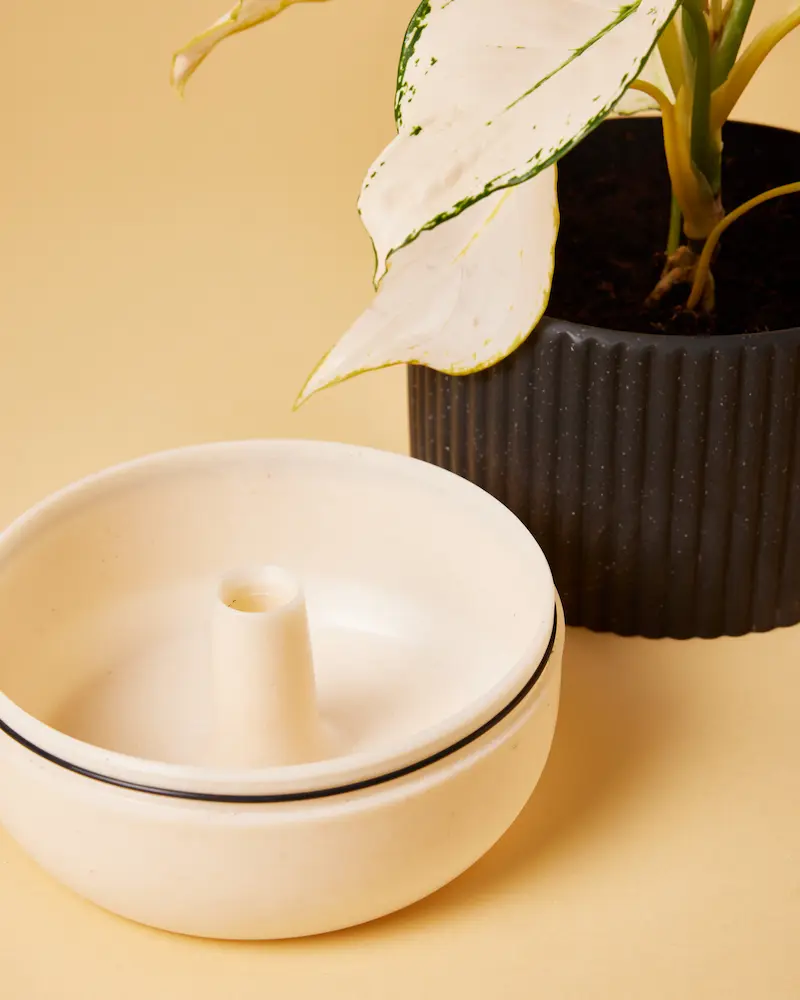- Un compartiment supérieur aéré, conçu pour accueillir une plante vivante, avec un trou de drainage pour garantir son bon développement.