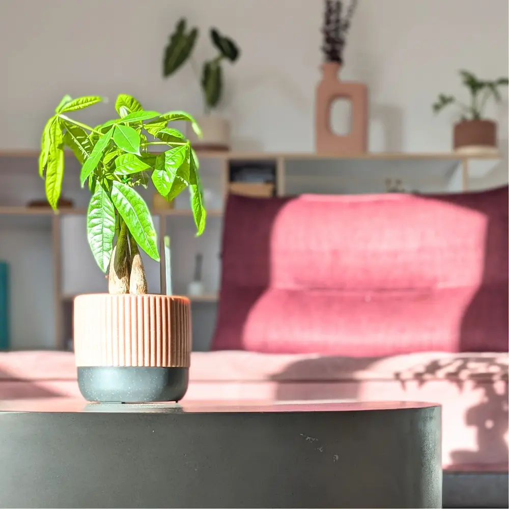 La partie supérieure est conçue pour accueillir une plante et intègre un trou de drainage, permettant un arrosage classique tout en garantissant l’isolation parfaite des deux compartiments.
